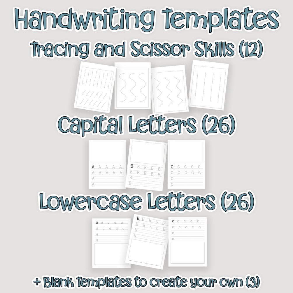 Handwriting Practice Templates - Includesworksheet templates for all letters in the alphabet, capital and lowercase, and pre-writing tracing lines that could also be used for scissor skills.